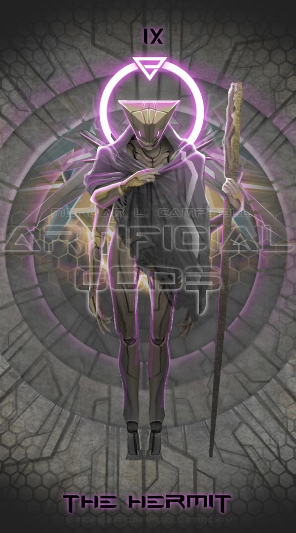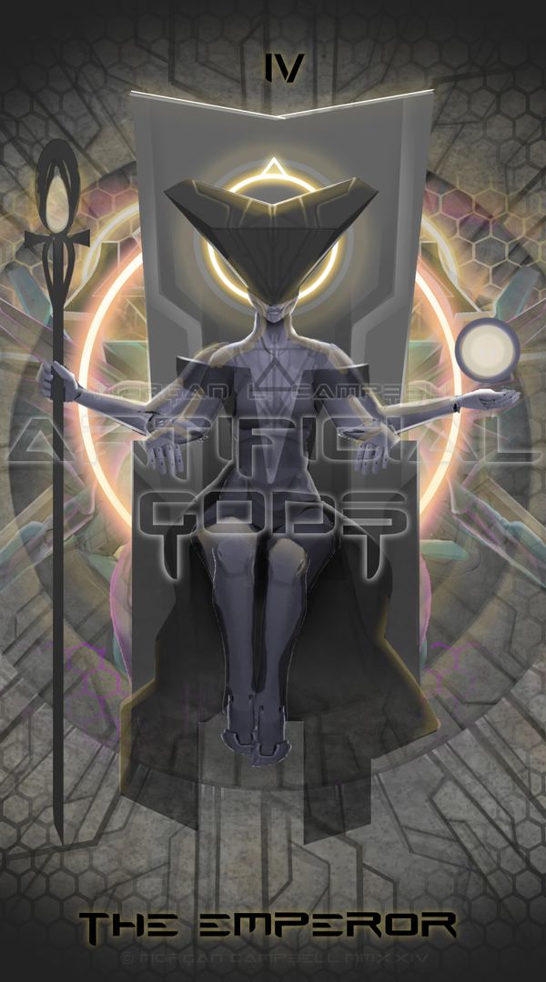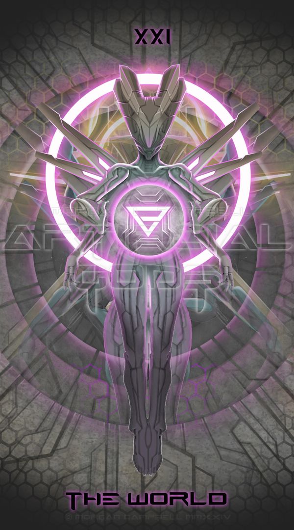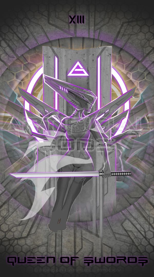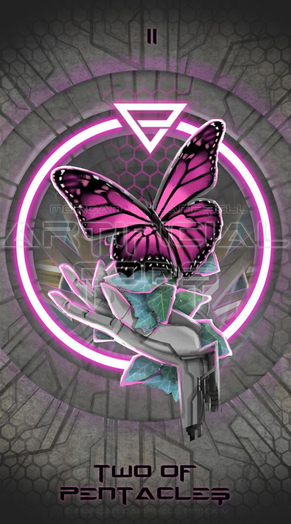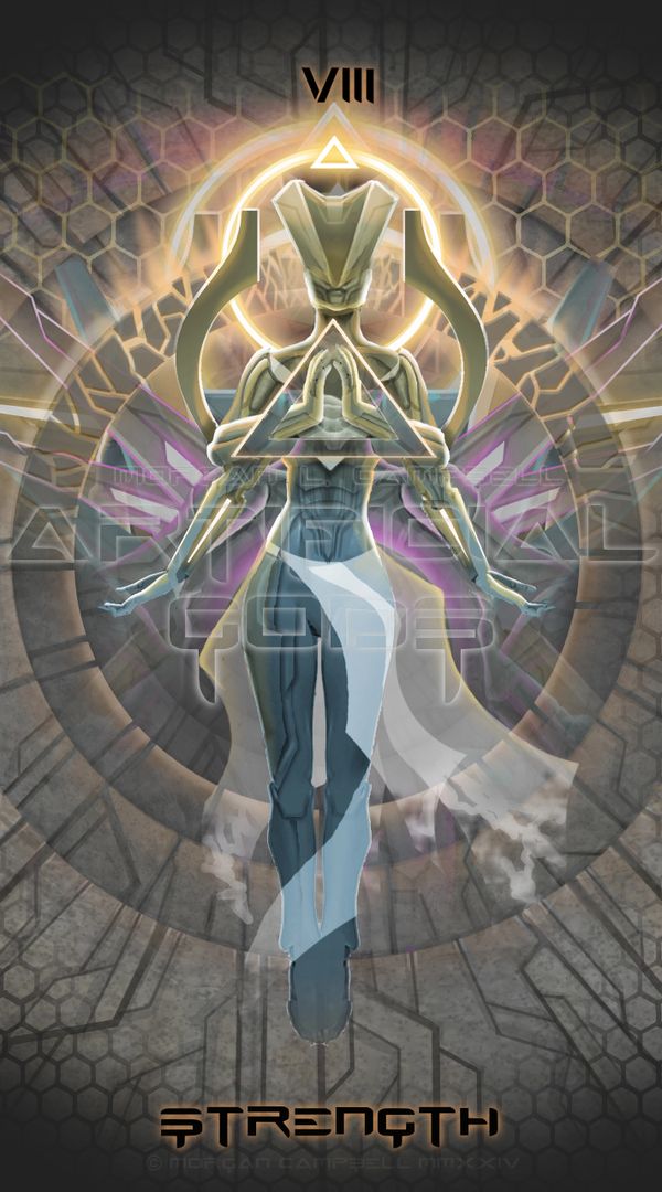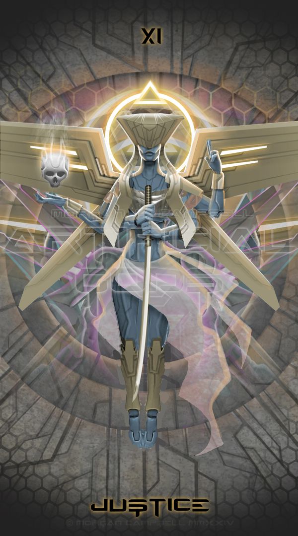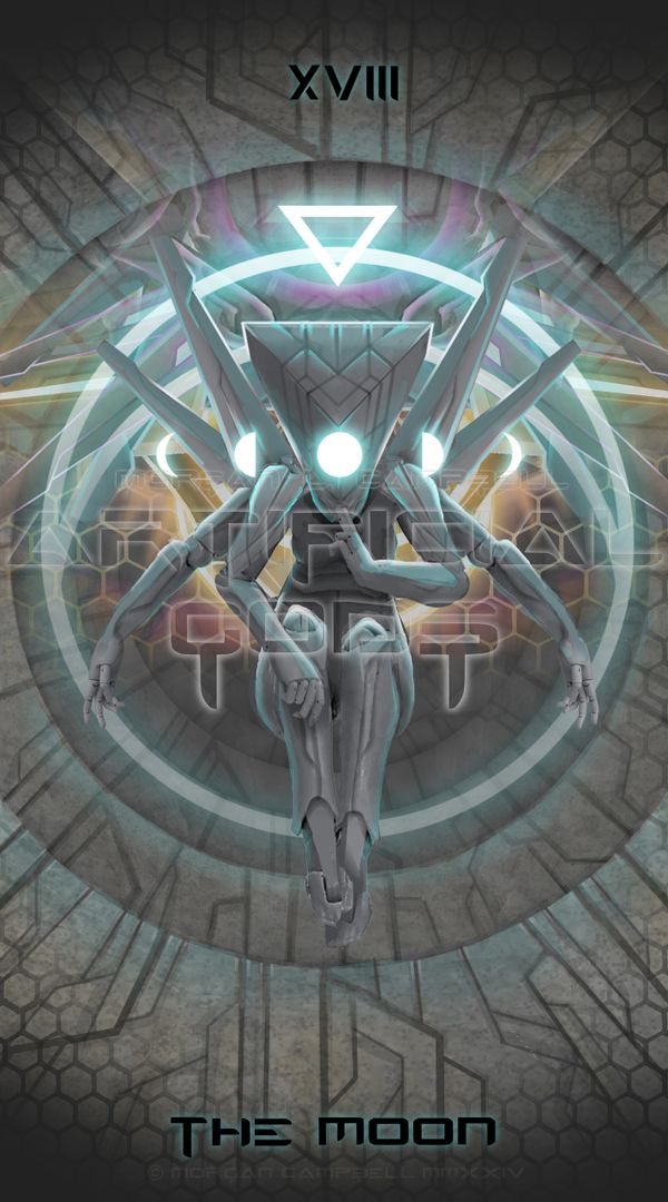 Delve into a digital fever dream of robotic Goddesses and neon halos, illuminating the juxtaposition of nature and technology. This surreal sci-fi tarot deck celebrates the marriage of these contrasting elements, exploring humanity's deification of artificial life, and offers a glimpse into the divine.
