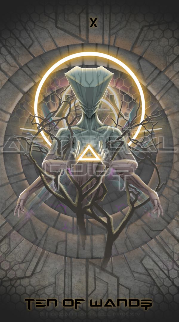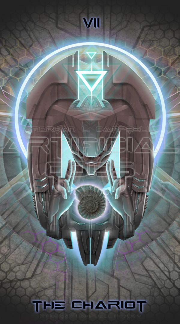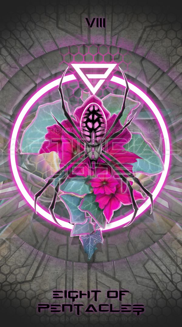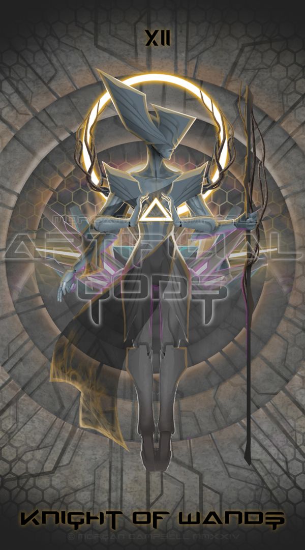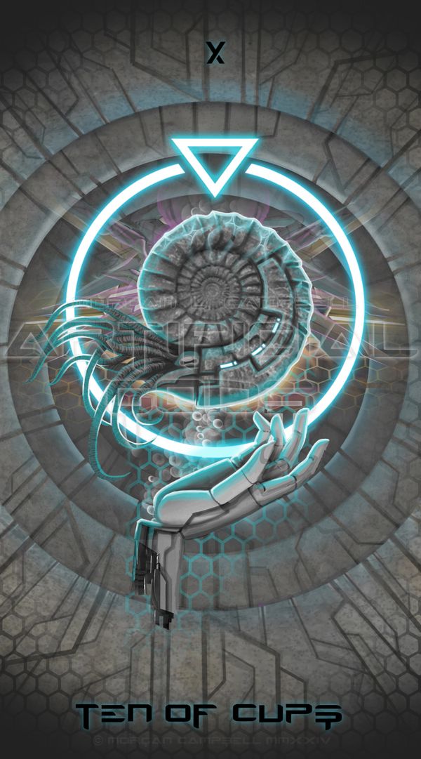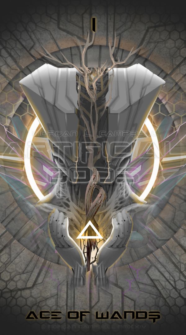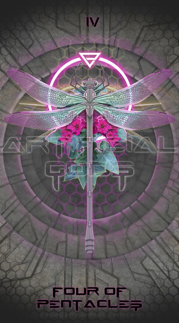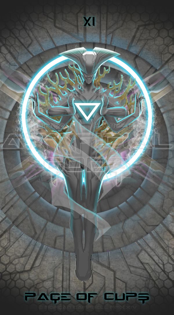 Delve into a digital fever dream of robotic Goddesses and neon halos, illuminating the juxtaposition of nature and technology. This surreal sci-fi tarot deck celebrates the marriage of these contrasting elements, exploring humanity's deification of artificial life, and offers a glimpse into the divine.