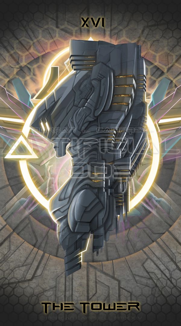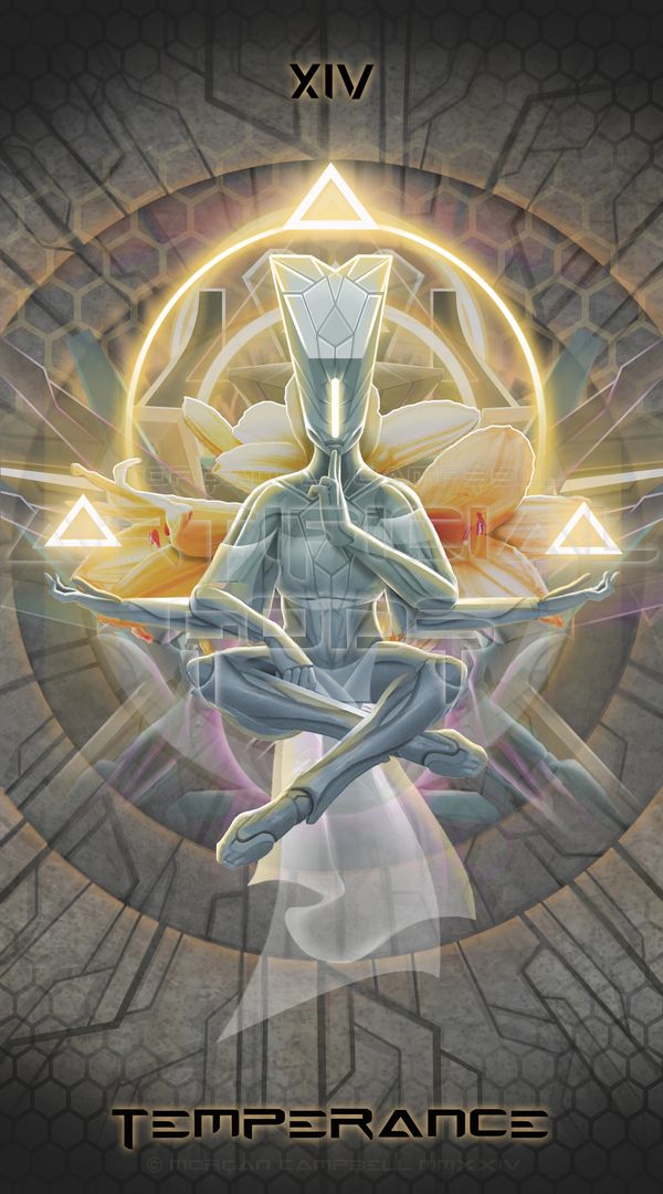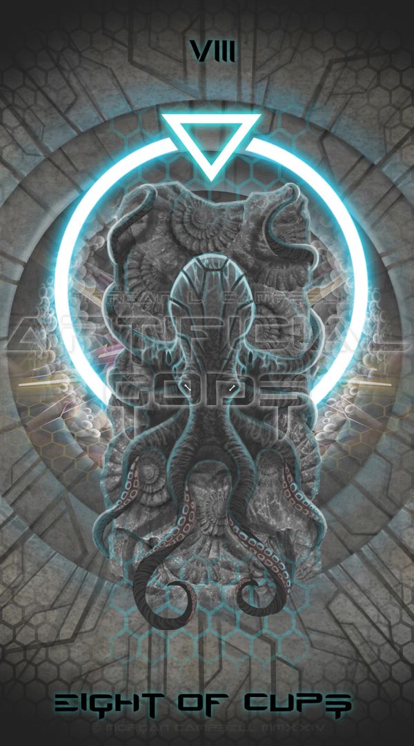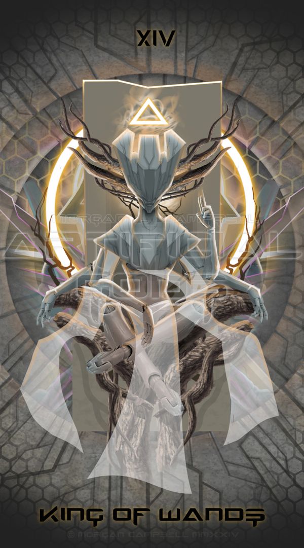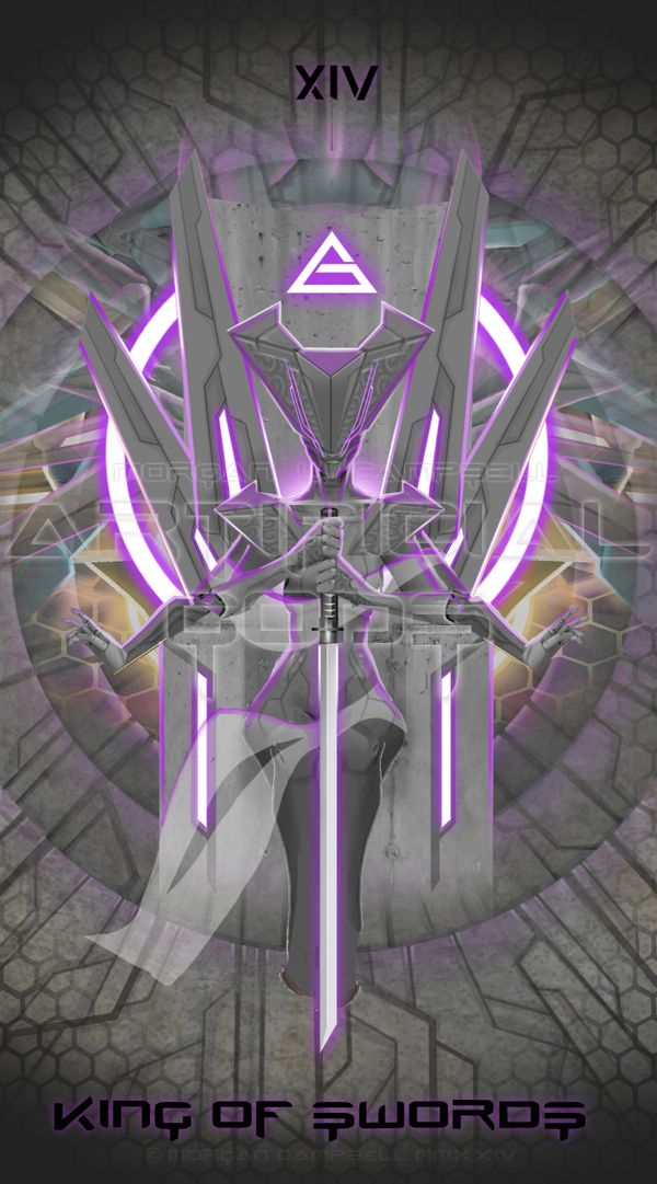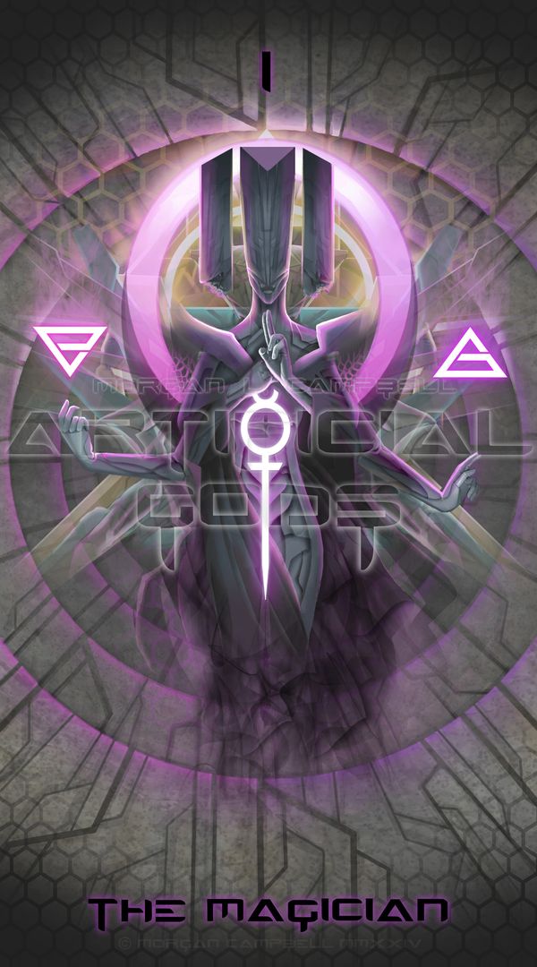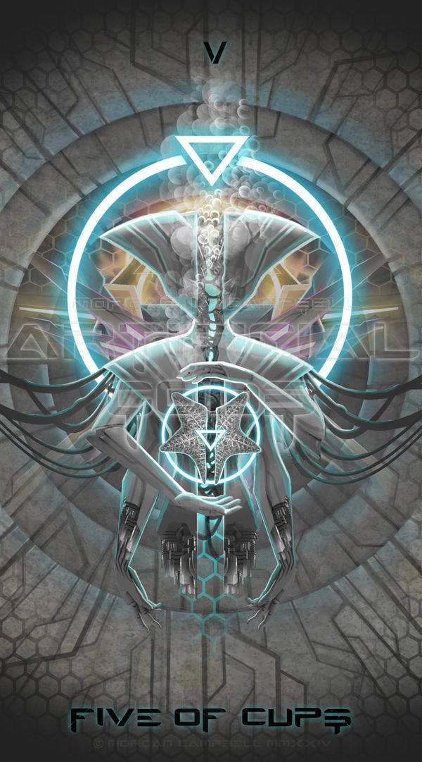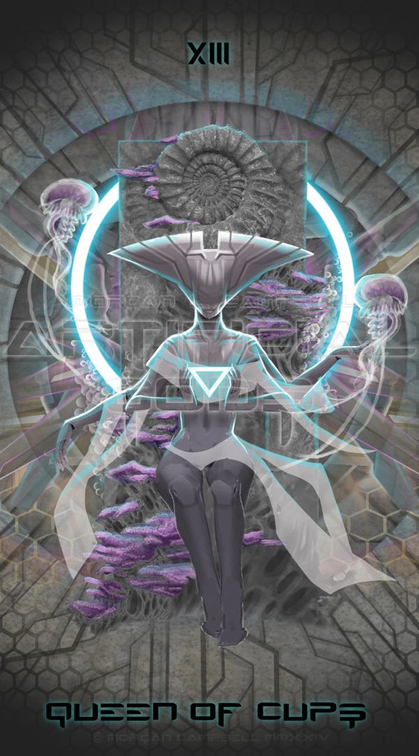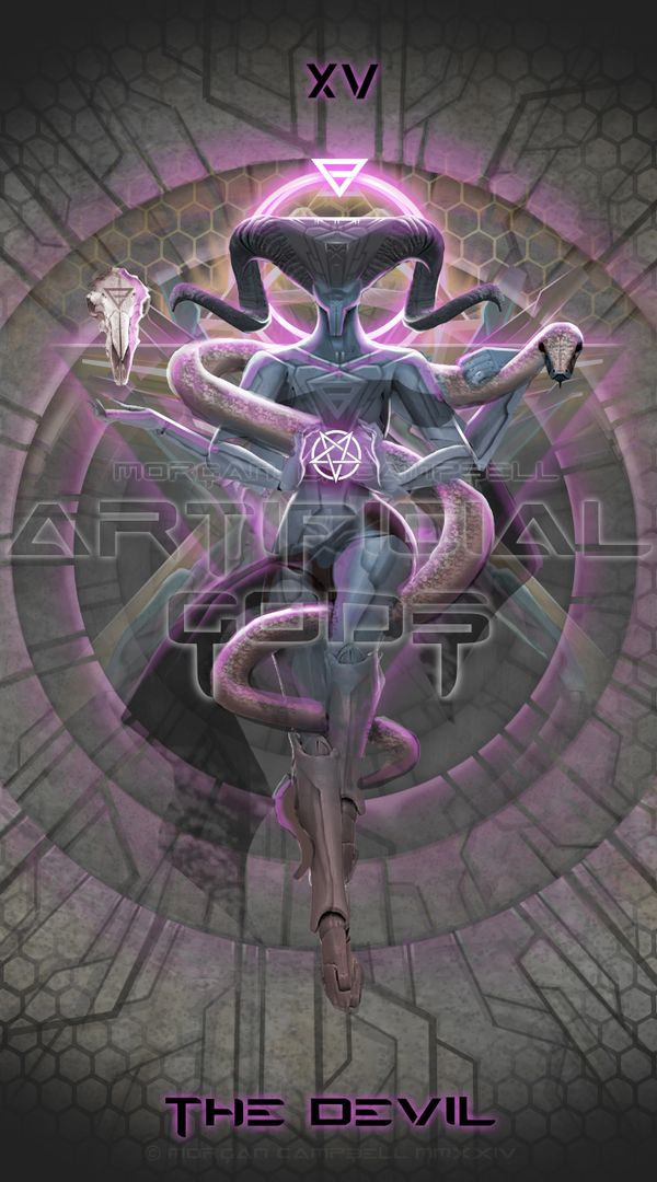 Delve into a digital fever dream of robotic Goddesses and neon halos, illuminating the juxtaposition of nature and technology. This surreal sci-fi tarot deck celebrates the marriage of these contrasting elements, exploring humanity's deification of artificial life, and offers a glimpse into the divine.