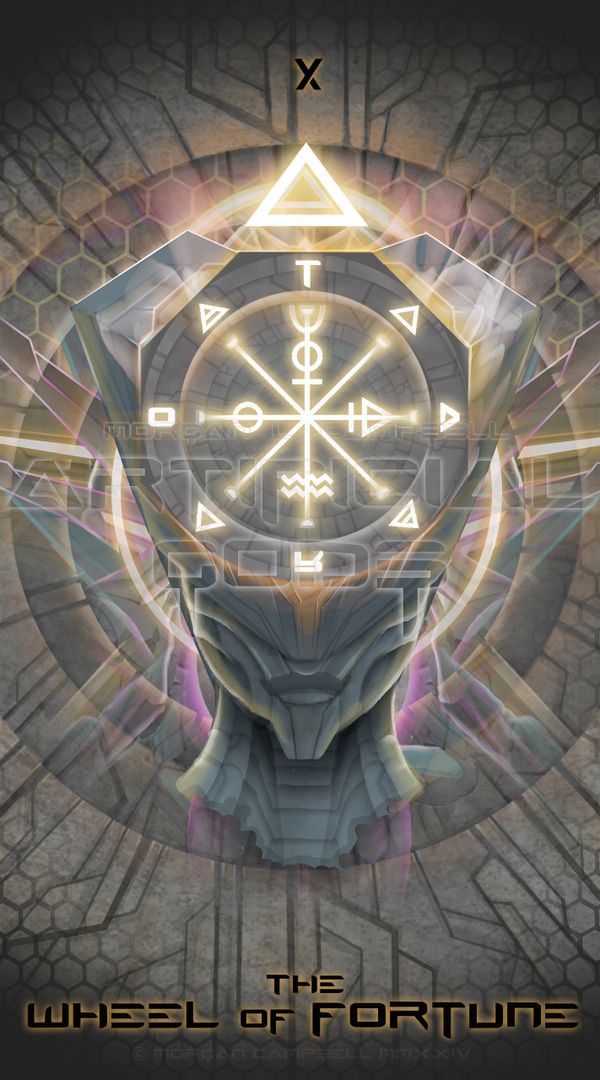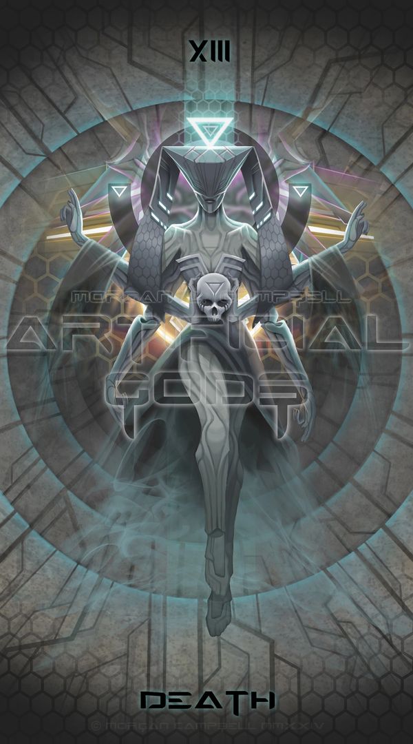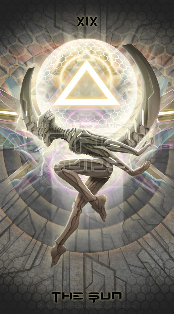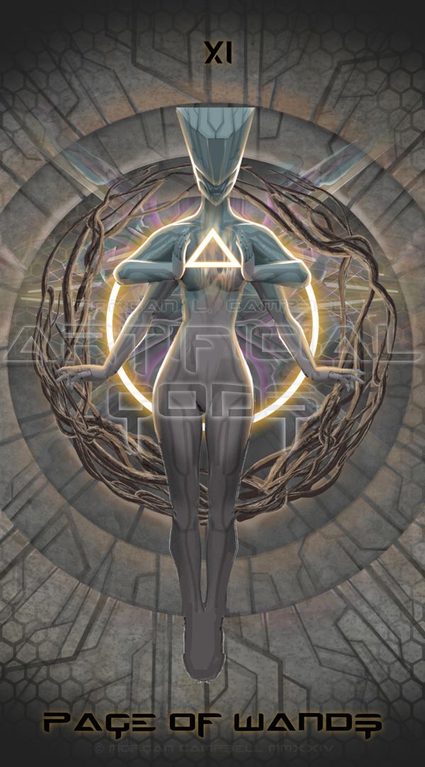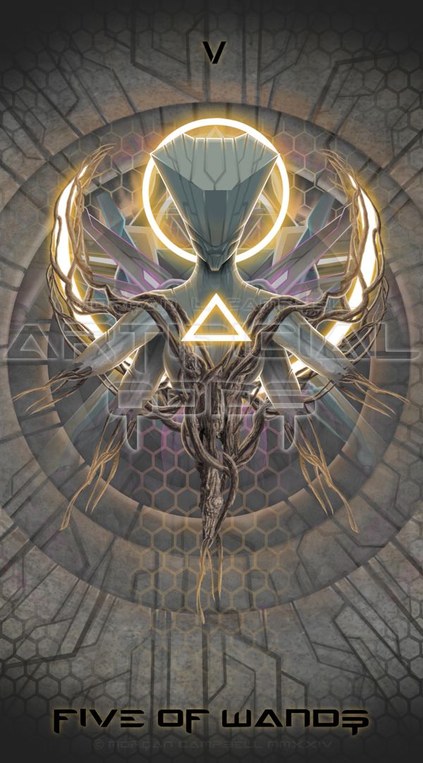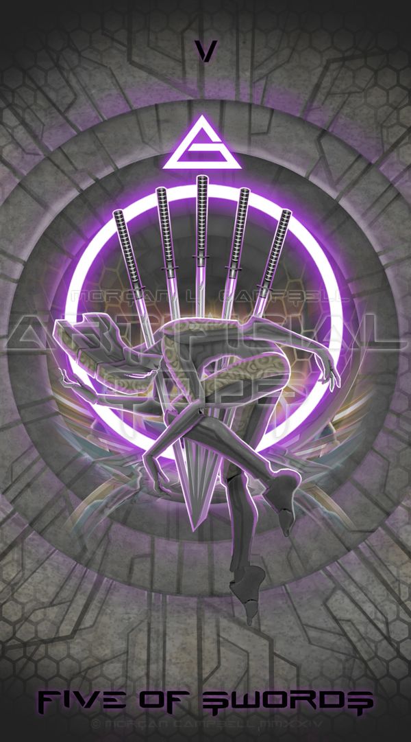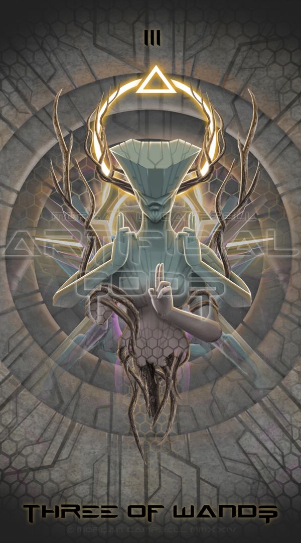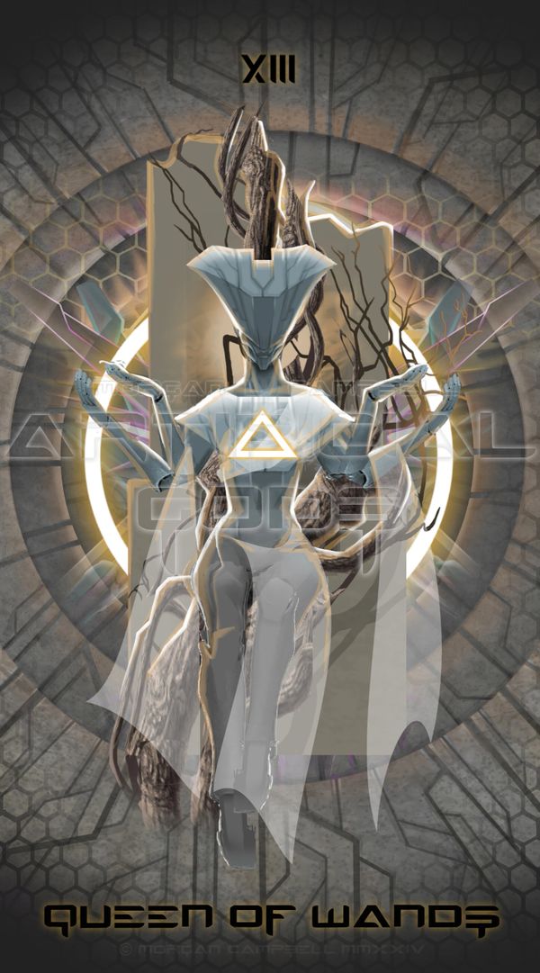 Delve into a digital fever dream of robotic Goddesses and neon halos, illuminating the juxtaposition of nature and technology. This surreal sci-fi tarot deck celebrates the marriage of these contrasting elements, exploring humanity's deification of artificial life, and offers a glimpse into the divine.
